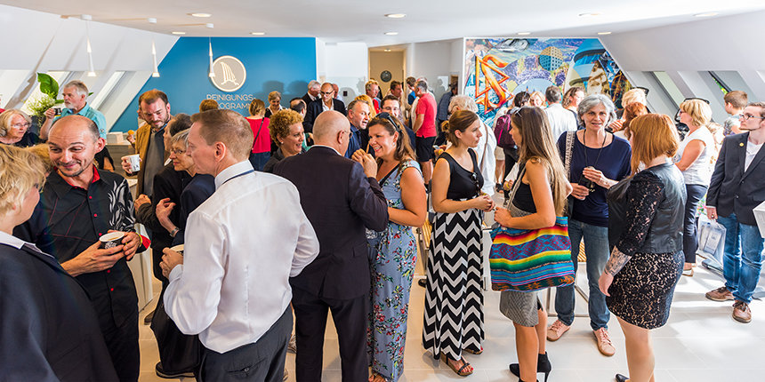 Una amplia gama de notables líderes cívicos y religiosos le dieron la bienvenida a los Scientologists a su nuevo hogar. Ellos fueron: el Sr. Samir El Midani, Asesor del Centro Interreligioso de Stuttgart, la Sra. Jirina Hlasivcova, asesora de educación sobre drogas para jóvenes, Centro de Prevención de Drogas y Terapia, la Dra. Elke Preusser-Franke, presidenta de la Asociación de Mujeres Judías de Alemania y el abogado de derechos humanos, el Sr. Alexander Petz.