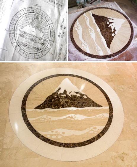 Hay más de 100 medallones de piedra tallados a mano empotrados en los suelos del Edificio de Flag. Estas obras maestras se crean usando diseños detallados y tecnología hidráulica para permitir que el mármol emperador oscuro pulido se ajuste de manera precisa, incluyendo la simbología de Scientology en la estructura misma del edificio en sí.
