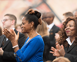 El impacto que Scientology tiene en la lucha por los derechos humanos fue evidente en los comentarios del reverendo Joseph Jones: “Estamos aquí para reclamar nuestro derecho a poseer el hoy y a diseñar nuestro propio mañana. Y es un mañana inscrito con ese término: ‘¡Derechos Humanos!’. Su programa de derechos humanos ha cobrado vida propia. Es un tren imparable avanzando con rapidez hacia la libertad y la justicia. Después de todo, sus esfuerzos por los derechos de las personas fueron inspirados por el trabajo ministerial de ese visionario, el señor L. Ronald Hubbard. Así que esto se erige en reconocimiento al hecho de que el espíritu humano es nuestro mayor recurso: unidos en una causa indestructible.