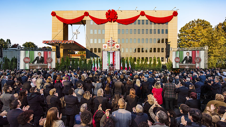 Miles de personas se reunieron en la meca de la cultura y de la moda de Italia, que ahora es el hogar de la Organización Ideal de Scientology más grande en el planeta.