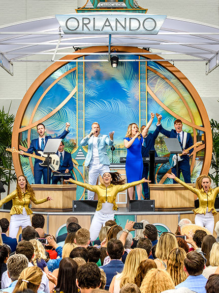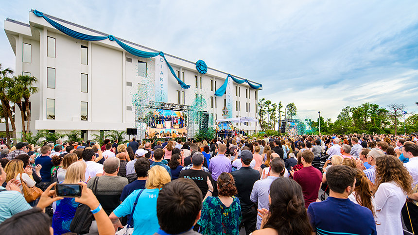 En esta tarde de primavera, la orquesta tocó a un ritmo alegre, una canción de muestras del menú de parques temáticos de la zona fusionada con hip-hop moderno. Era un estribillo en armonía con los dignatarios presentes, que propugnaba el legado de la Iglesia en Orlando e instaron a los feligreses a llevar la “magia real” a sus comunidades.