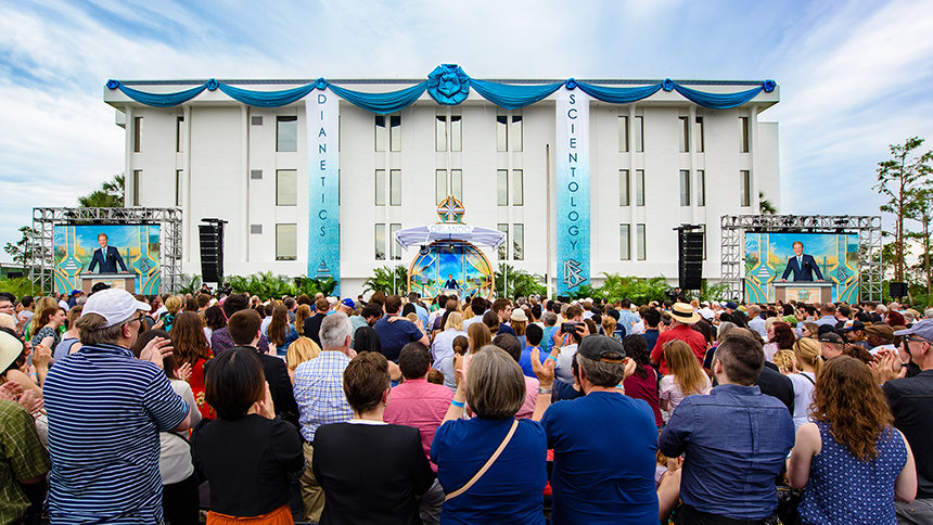 Para conmemorar la ocasión especial, el Sr. David Miscavige, líder eclesiástico de la religión de Scientology, dijo: “Más allá de todo lo demás por lo que tu ciudad es conocida, aún hay otra forma de narrar este relato y sigue a partir de una clase diferente de magia. Porque con la caída de ese listón inaugural, surge una nueva Iglesia de Scientology y con un reino de libertad espiritual donde cada ciudadano reina”.
