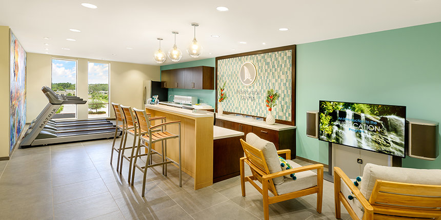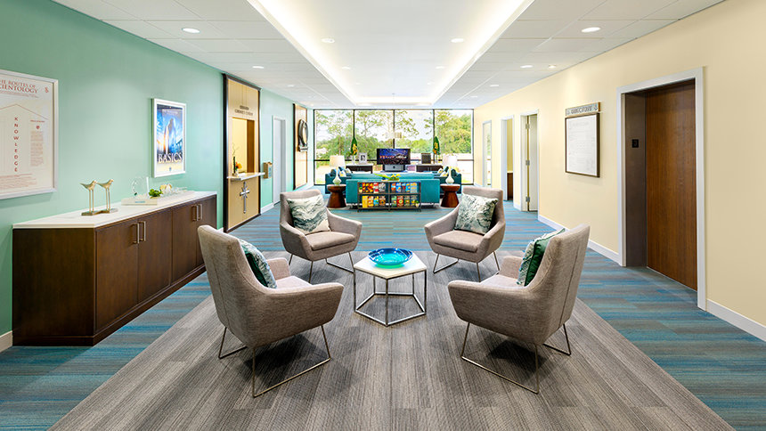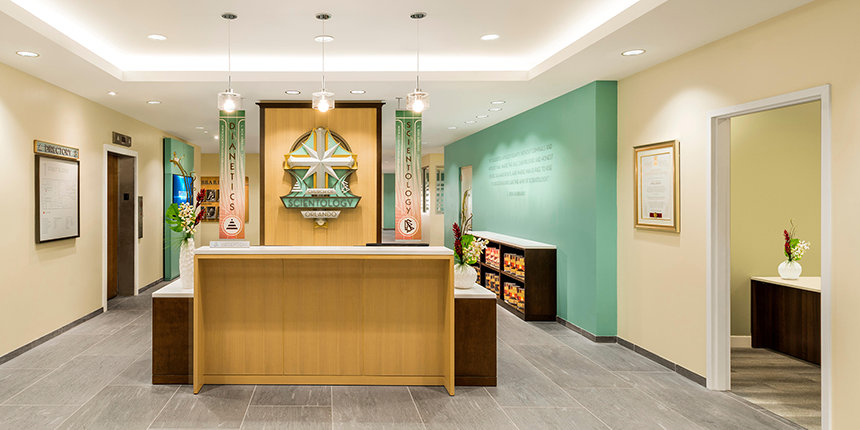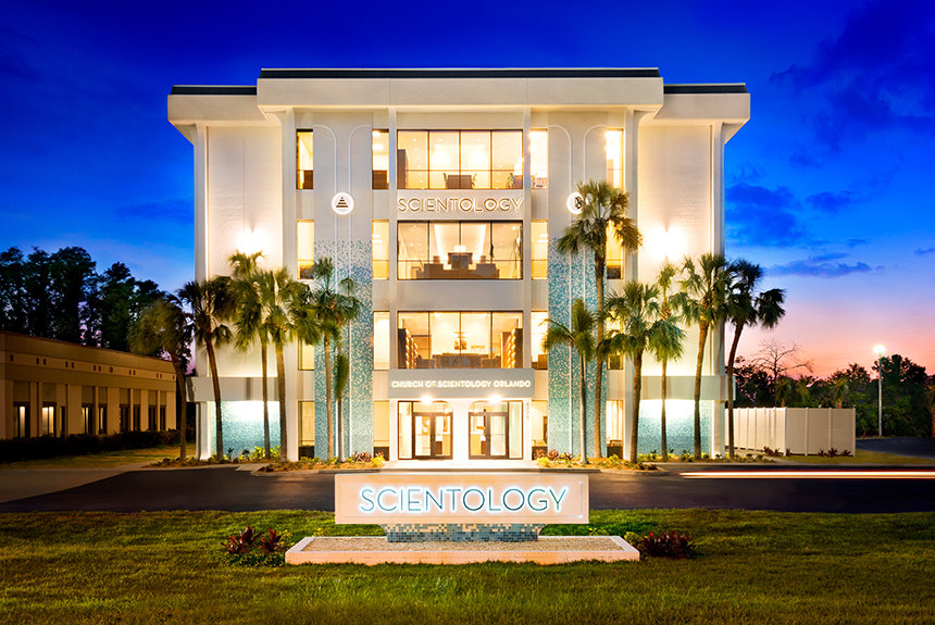 La primera cosa que los visitantes y los feligreses vieron al acercarse a la nueva Iglesia de Scientology Orlando de cuatro pisos es la fachada de mediados del siglo. Al entrar, los visitantes entraron a un espacio brillante y moderno tomando las pautas de acciones de los soleados alrededores de Florida. La tonalidad verde azulada clara, arena y tonos de gris llevan sensibilidad serena al Centro de Información Pública donde se presenta una introducción a Dianetics y Scientology. Sus exhibidores presentan más de 500 películas en 17 idiomas que comparten las creencias y prácticas de la religión de Scientology, así como la vida y el legado del Fundador de Scientology, L. Ronald Hubbard.
