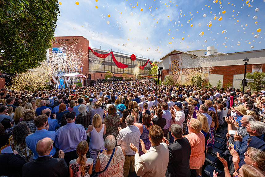 Resaltando eso en la gran inauguración hubo elogios de líderes de la comunidad de Hollywood y la Ciudad de Los Ángeles. Leron Gubler, presidente de la Cámara de Comercio de Hollywood, comentó: “Lo que pasa aquí hoy en día lleva consigo un gran peso. Las personas están observando a Hollywood y la gente toma nota de lo que la Iglesia hace. Y ustedes, no sólo están poniendo un punto de anclaje aquí. Sino que están proporcionando oportunidades excepcionales a los escritores, directores y a todo tipo de profesionales creativos para que prosperen en este entorno único. Así que trabajemos juntos para llevar a Hollywood aún a mayores alturas”.