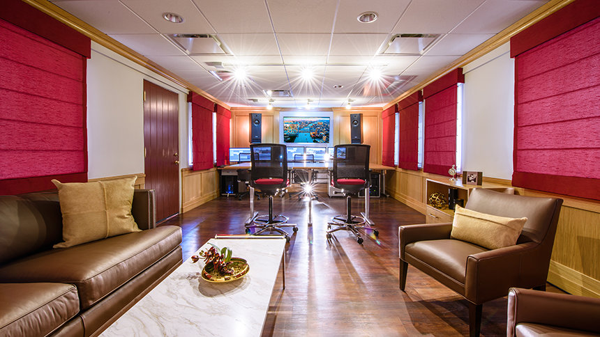 Es la instalación más moderna y sofisticada de medios digitales de su tipo en el planeta. Las actividades de Scientology a nivel mundial que incluyen campañas humanitarias y de mejoramiento social, así como noticias de acontecimientos mundiales actuales, se introducen en la Central de Ingreso de datos, el centro coordinador de información internacional de medios de comunicación del estudio, y se encuentran accesibles en las operaciones de trasmisión, audio y publicaciones de la instalación. Todo eso está entrelazado en su núcleo por más de 43 kilómetros de cable de fibra óptica conectando una red de Súper computadoras con una capacidad combinada de 3.2 millones de gigabytes de información y plataformas de medios, distribuidos a bases de datos propias para la traducción instantánea.