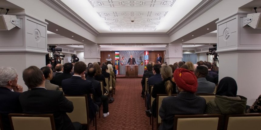 Entre los distinguidos oradores invitados que participaron en la dedicatoria se encontraban el Honorable Hugo Coveliers, Senador del Parlamento Belga; el profesor Abolfazl Beheshti, profesor de Relaciones Internacionales y Economía de la Energía en la Universidad de Lille, Francia; el Honorable Juan Ferreiro, Delegado del Director General para Asuntos Religiosos en el Ministerio de Justicia Español; la Sra. Katalin Szomor, miembro experto de la Comisión de Drogas del Parlamento Húngaro y antigua Coordinadora Nacional sobre Drogas; y el reverendo Christopher Vonck, Rector de la Facultad para el estudio Comparativo de las Religiones en la Universidad de Antwerp.