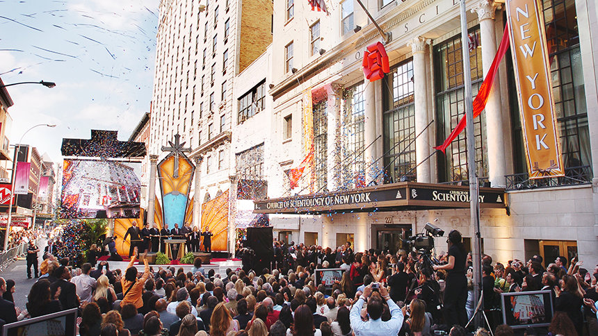 La Iglesia de Scientology de la Ciudad de Nueva York, localizada al lado de Times Square, fue un regalo de la Asociación Internacional de Scientologists a la gente de Nueva York en reconocimiento por su valor y espíritu a la hora de encarar el desastre de las Torres Gemelas en el 2001.