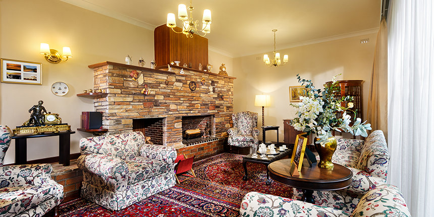 En el exterior, la piscina ha sido restaurada a su forma clásica y color turquesa. Pero la chimenea de piedra en el interior es lo más impresionante, tanto por su belleza como por su extraordinario recorrido. Un propietario posterior la había desmantelado, reutilizando las piedras en una pared de jardín. Ahora han sido recuperadas por expertos en restauración, limpiadas a mano y devueltas con esmero a su forma original y exquisita: cálidas observadoras de innumerables historias, listas para revelar esos momentos a todos los que visitan este monumento.