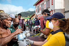 Luego, con la Iglesia extendiendo ayuda por las ondas hertzianas y en línea, llegó la demanda por soluciones. La Iglesia respondió con la distribución de 45 millones de materiales humanitarios.