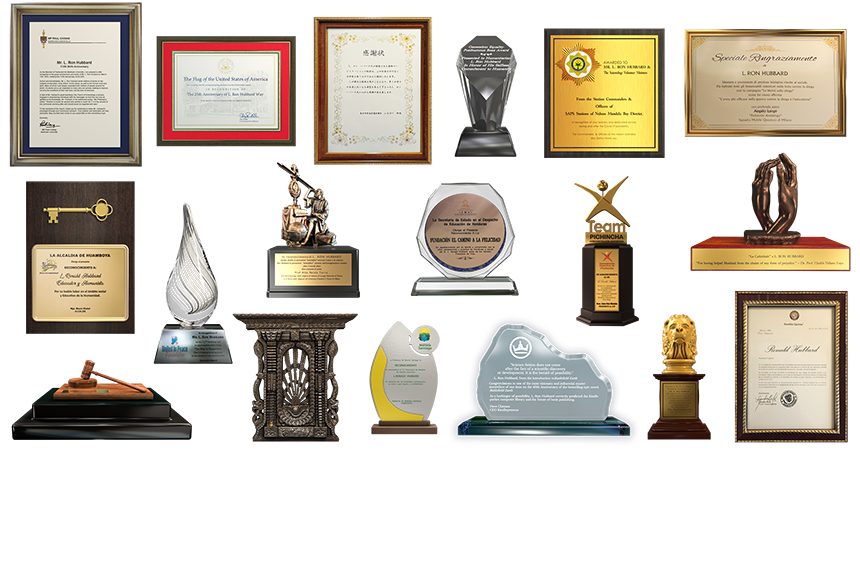 El Sr. Miscavige presentó entonces una cascada de honores otorgados a L. Ronald Hubbard en reconocimiento de su cumpleaños: