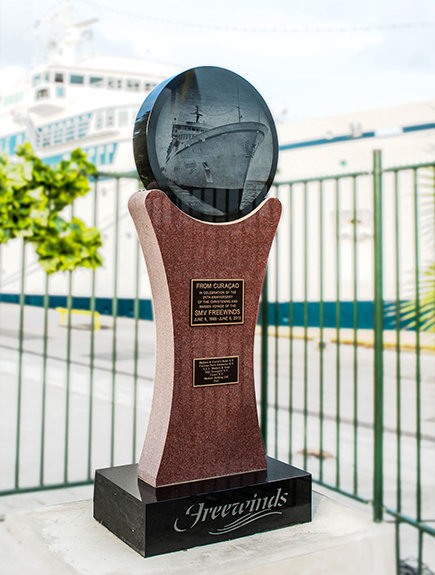 - Un monumento en el Puerto de Willemstad de Curazao, el puerto de origen del Freewinds, revelado por la oficina del Primer Ministro en honor a la estadía permanente del barco en la isla.