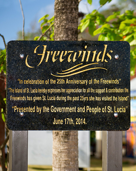 - Un monumento en St. Lucia Harbor, presentado en nombre del gobierno y el pueblo por contribuciones del Freewinds a su gente.