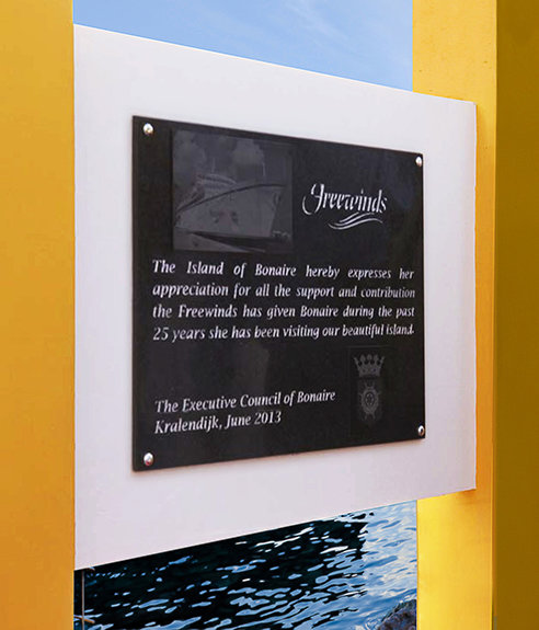 - Un monumento en Bonaire Harbor, autorizado por el gobernador en agradecimiento de los 25 años de apoyo del barco.