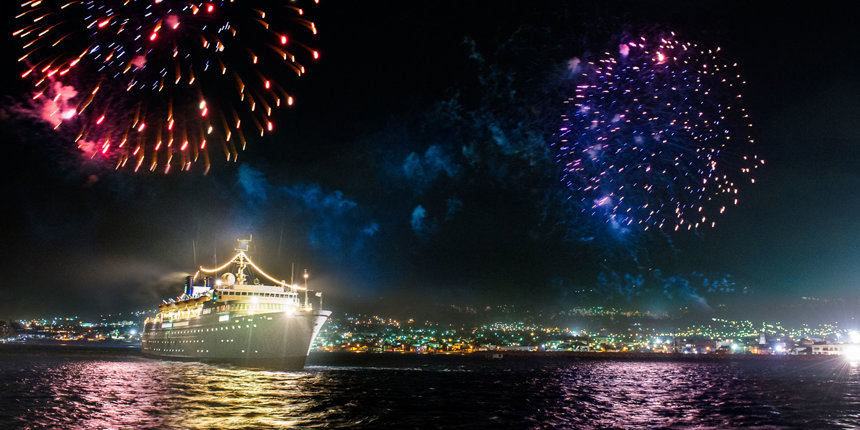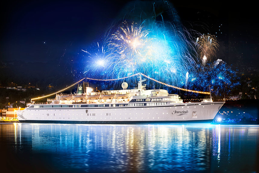 En la noche del sábado 14 de junio, los fuegos artificiales se elevaron por encima de la Bahía de St. Kitts mientras el barco motorizado de Scientology, el Freewinds, se embarcó en su Crucero de Aniversario de Plata.