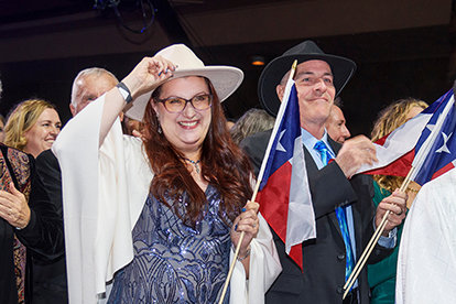 “Hay una última historia que aún está esperando a surgir”, continuó el Sr. Miscavige, antes de que el Shrine estallara en un crescendo de celebración mientras él develaba la próxima Org Ideal en Puerto Rico. La música de salsa elevó la noche, mientras un avance cinematográfico del deslumbrante nuevo edificio en el corazón de San Juan provocó una ola de banderas puertorriqueñas en todo el auditorio. La histórica ceremonia de inauguración, que anuncia la primera Org Ideal para el Caribe, está programada para llevarse a cabo en las próximas semanas.