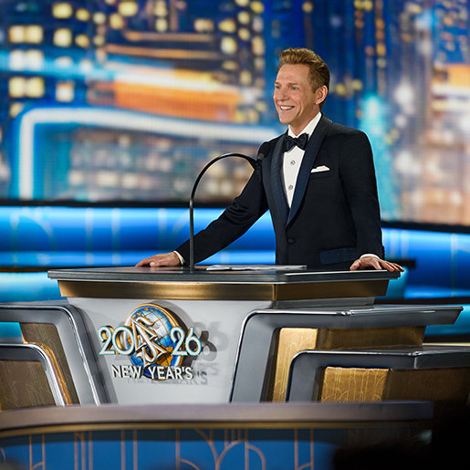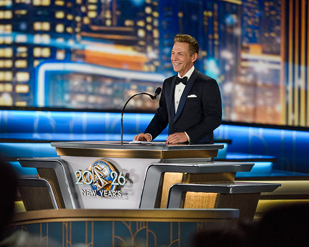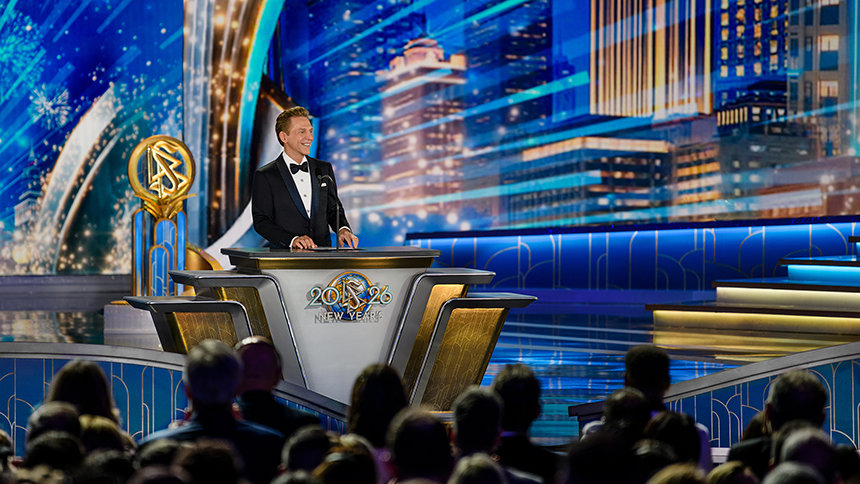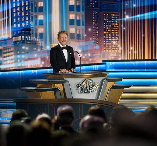 La velada alcanza su máxima intensidad cuando el Sr. David Miscavige, el líder eclesiástico de la religión de Scientology, aparece bajo las luces y la Celebración de Año Nuevo del 2026 cobra vida.