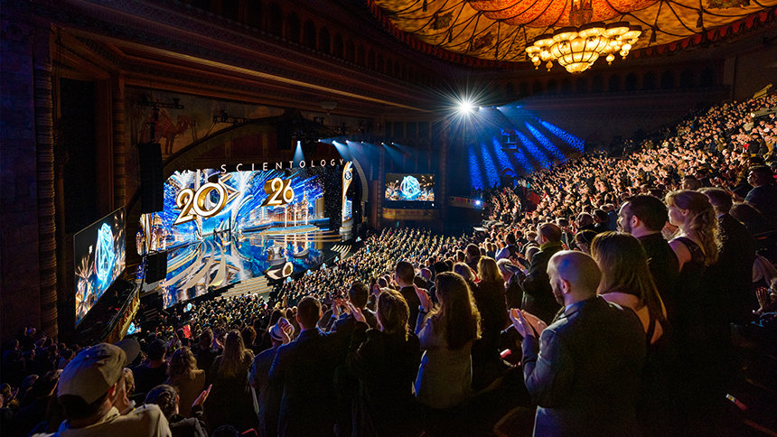 Más de 6500 asistentes transforman el auditorio en una celebración épica cuando la Celebración de Año Nuevo comienza con un impulso inconfundible de Scientology.
